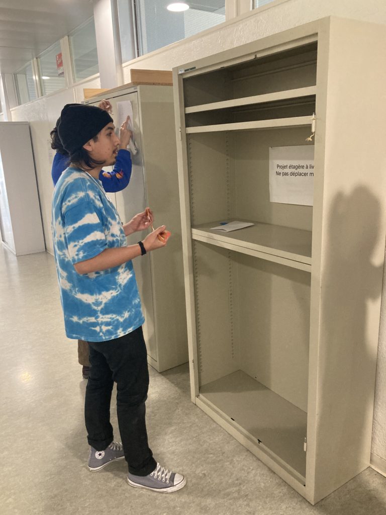 Sur une proposition d’Isabelle Gabella Verdan, des réalisateur.ice.s publicitaires de 3e année ont entamé un projet d’encouragement à la lecture et à l’échange. Intitulé « Libre lire », l’idée est de mettre à disposition de la communauté scolaire une boîte à livres pour faciliter l’échange d’ouvrages. Les réalisateur.ice.s publicitaires de la classe RP401, sous la houlette de Mathieu Krayer, maître principal, vont mener à bien ce projet de A à Z en commençant par le graphisme et en finissant par le « covering ». Le covering consiste à recouvrir un objet par une fine couche en plastique afin de lui donner un aspect nouveau (c’est ainsi que les bus et les trains deviennent des supports publicitaires par exemple). Une étagère destinée à la casse sera donc recyclée et réutilisée pour ce projet.
