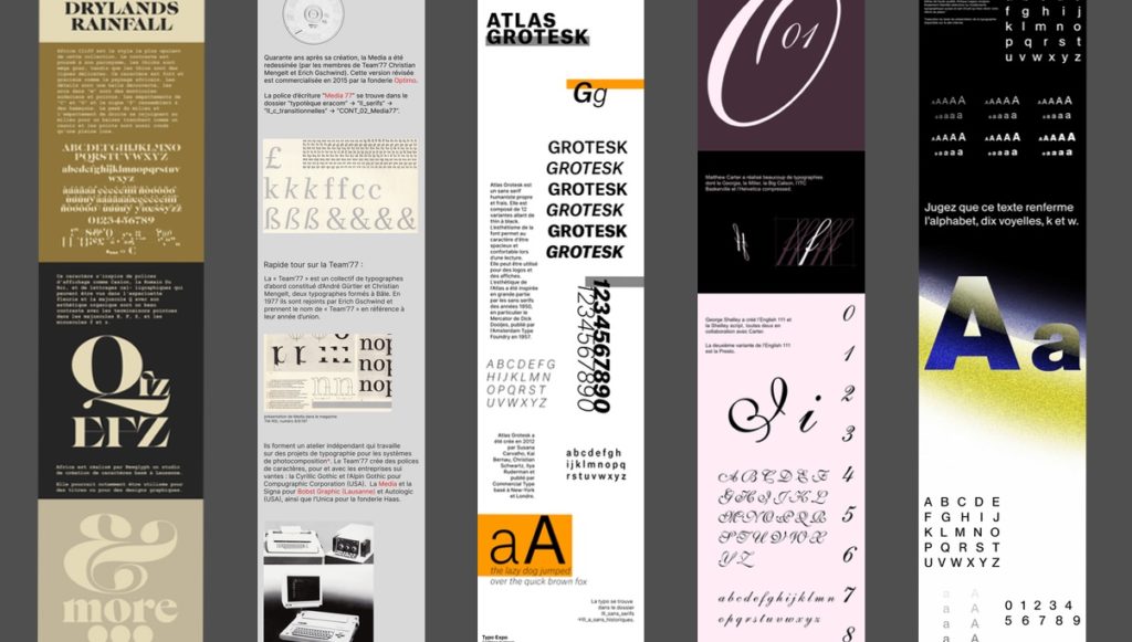 Un projet a été mené durant ce semestre autour de la nouvelle typothèque de l’Eracom. Les élèves de deux classes de 1re année ID, ID421 et ID321, ont conçu des newsletters pour présenter cette collection de fontes.